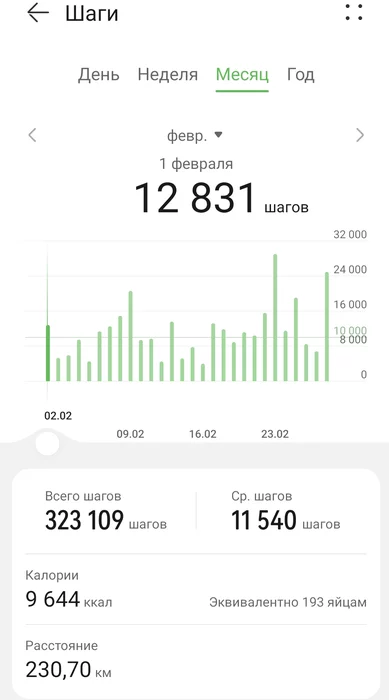 Первые 17 дней февраля каждый день выходил на улицу, старался придерживаться нормы. С непривычки даже 6к шагов каждый день было тяжело набивать, хотя бывало, когда 8-9к нахаживались незаметно, обычно в дни тренировок в тренажёрке. (Люди, которые на постоянной основе нахаживают 10к+ ежедневно - кто вы?? +rep вам)