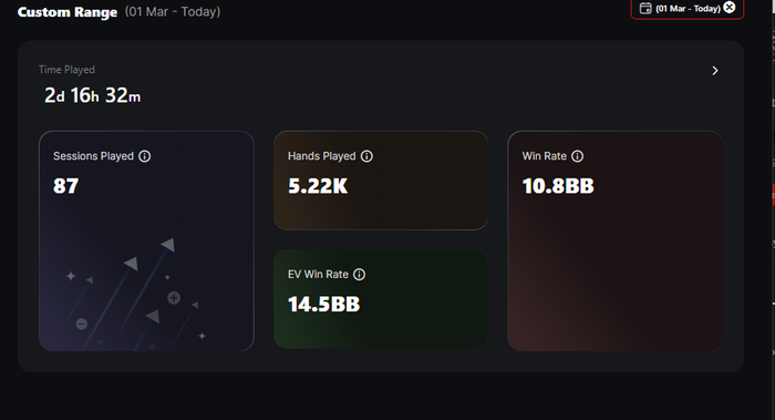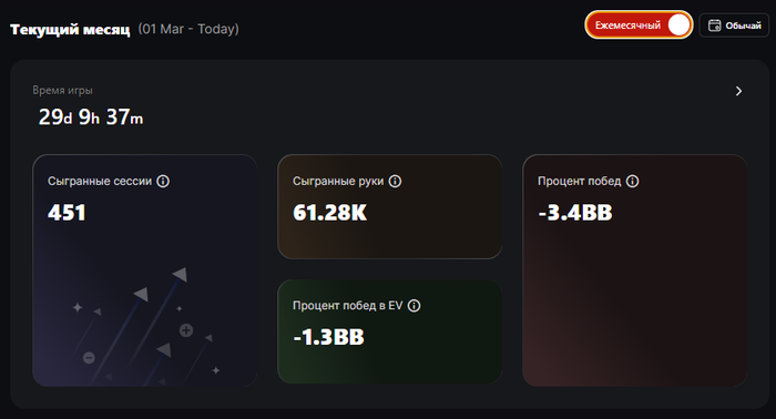 И да, это покер. Я не спрашивал «почему я проиграл 30 бай-инов за неделю». Я показываю дисперсию на конкретной дистанции и малую часть конкретных выставлений — почти всегда не в свою пользу. Ошибки, конечно, есть, и для них тоже отдельный блокнотик. В целом вся база, наигранная за это время, будет разобрана с тренером (если кому интересно сотрудничество — можем обсудить в личке). Завтра вы, возможно, поймаете стрик на 60к+ рук и всю неделю будете сомневаться в себе и в принятых решениях, а кто-то напишет «это покер».