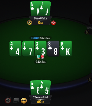 Префлоп против нас справились тузами раз.