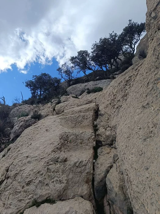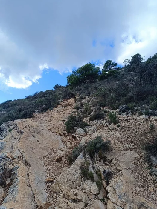 Сначала я пошёл не туда, конечно. Минут десять карабкался в несуществующую тропу, пока не понял, что я и горы — это «угадай направление по интуиции как идиот». Вернулся. Нашёл табличку Sendero Maigmó.