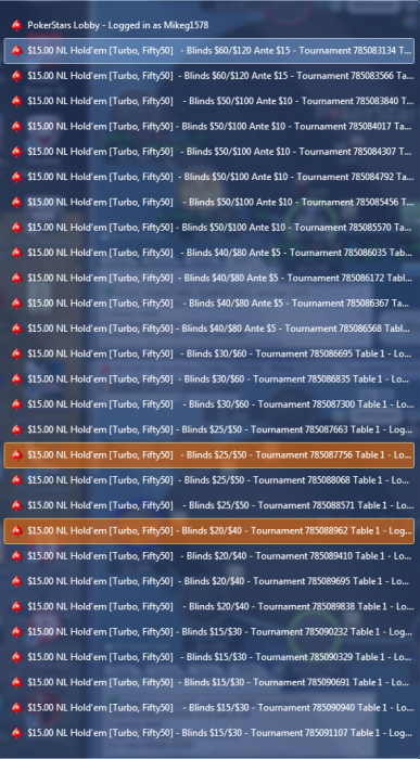 Poker Stars, $14.31 Buy-in (125/250 blinds, 30 ante) No Limit Hold'em Tournament, 6 Players