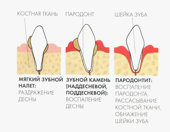 как только мягкий налет превратился в твердый (зубной камень), сам ты его уже не уберешь. И он там постоянно есть, из-за него десна воспаляется, воспаленная десна сразу кровит при механическом воздействии, мы хуже чистим потому что страшно и кровит ну и круг замыкается.