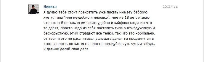 PopeyeTheSailor, ...ну что могу сказать по вышеобозначенному тексту...такой, своеобразный подход к общению с молодежью. сначала подумал, что бомбануло у тебя не слабо, ну или как там...на этом...на Джипси тиме пишут...А потом пошел, покурил немного (это я фигурально выразился) и вспомнил, что в начале ты про шаолиньскую технику пикапа рассказывал. Ты сказал, что еще не порол ее...знаешь, у меня возникло ощущения, что и вряд ли будешь, судя по ее реакции...