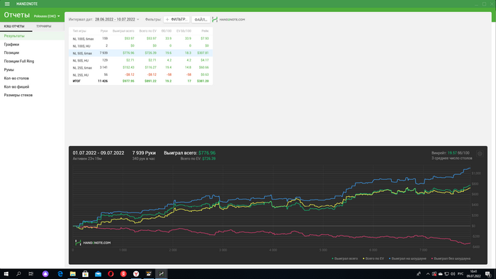 Я тоже хочу оставить отзыв об обучении с Женей. Провели только одно занятие. До этого играл нл 25 в 5бб и нл 50 в 0. После первого занятие полностью прислушался к рекомендациям Жени и раза 4 занятие пересмотрел. Много говорить не буду, вот мои результаты, конечно без апстрика не обошлось, но и понимания игры стало лучше+тильта меньше. С такими темпами, после 5 занятия буду шотать нл 1к)). Единственное о чем жалею, что долгое время можно сказать самообучался методом проб и ошибок. Надо было сразу брать курс и сэкономил бы много времени. Спасибо тебе мой учитель, гуру и сенсей