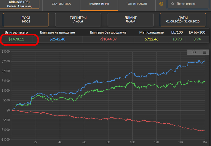 Джентльмены, всех приветствую. Отчитываюсь по августу. Месяц получился очень скомканным, около половины его было потрачено на старую работу (съемки и ретушь). И с гордостью могу сообщить, что с 1 сентября я наконец-то полностью el pokeristo. Страшно представить сколько времени я был фотографом. Многих целей удалось добиться. Я более менее наладил жизнь в России, посмотрел практически всю Азию, помог родственникам в жилищных вопросах. Попробовал все развлечения, которые в детстве влекли меня с картинок - серфинг, гольф, яхтинг. Многое, конечно, и не получилось. Я не стал новым Карлом Лагерфельдом (да и от того чтобы быть звездой российского уровня был объективно далёк), не смог навести порядок на рынке путем объединения топов, не победил свадебных организаторов-нахлебников. Ну и в общем-то рад, что эта страница моей жизни завершена - очень вдохновлен своим новым покерным делом, мотивирован и вновь готов вкалывать, как в 19 лет. Прошу прощения за такой лирический кусок текста, руки сами его написали, а я не смог ничего поделать) Покер же в августе пребывал в состоянии стагнации, я пытался, пыхтел, хитрил, выкраивал куски времени, но всё равно не смог заниматься им должным образом. Результат вроде бы даже и не выглядит плохим, с учетом обстоятельств. Дистанция понятно что катастрофическая Цели на сентябрь 1) Наконец-то уделю все свое время покеру 2) Поменял немного оформление канала, буду признателен, если вы напишите как вам. Развитие ютуба также мне очень нравится, хотя я пока и плохо понимаю, зачем мне это нужно)
