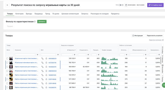 Я бы сначала открыл мп статс, вбил запрос "Игральные карты", отсортировал по выручке карточки