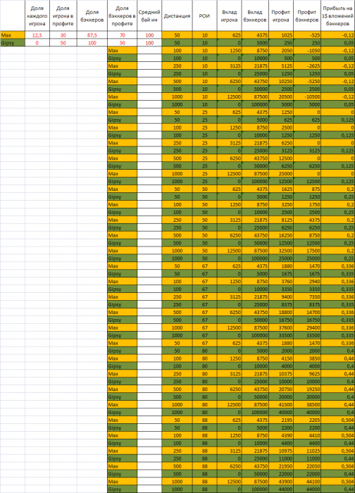 Макс в идеале ты должен продавать 80% долей на турниры, чтобы играть без несчастья и расчитывать на хорошую прибыль при доезде. Учитывая еще затраты на перелеты, проживание, и.т.д. может даже больше, если ты едешь на турнир без спонсора, при этом изначально ты должен играть с РОИ больше 25% чтобы твои дольщики были в плюсе. Джипси достаточно играть с любым положительным РОИ чтобы его дольщики были в плюсе.