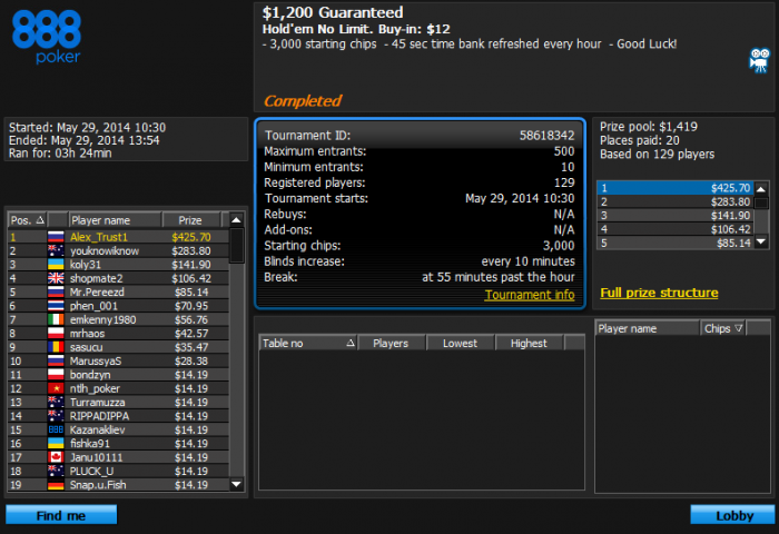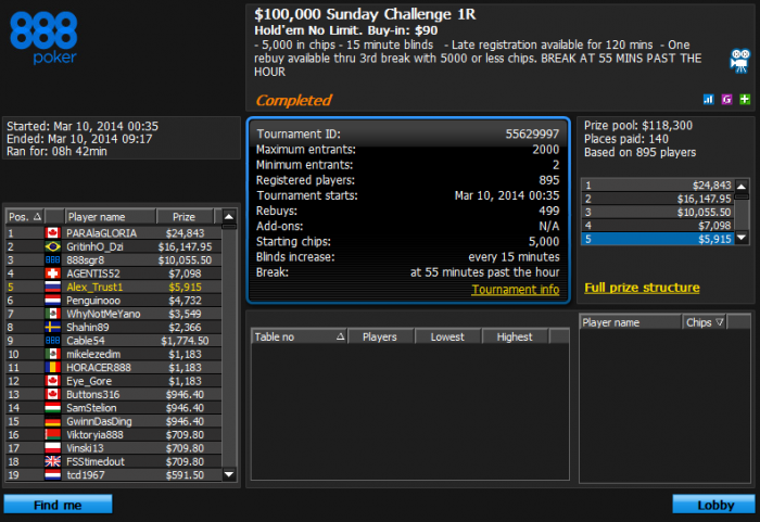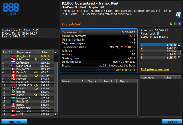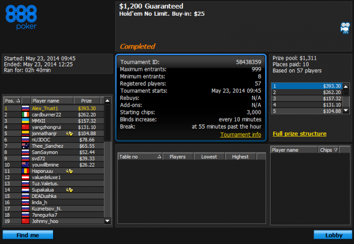 +4756.73$Несколько было топ1 в регулярках на 888: