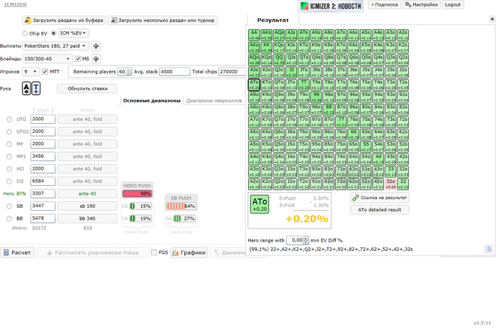 Привет. Чем ближе разница между мат ожиданием пуша и фолда к нулю, тем менее важно становится, как мы сыграем.