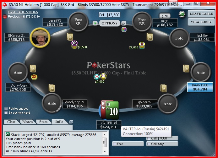 NL Holdem $700(BB) Poker Stars
