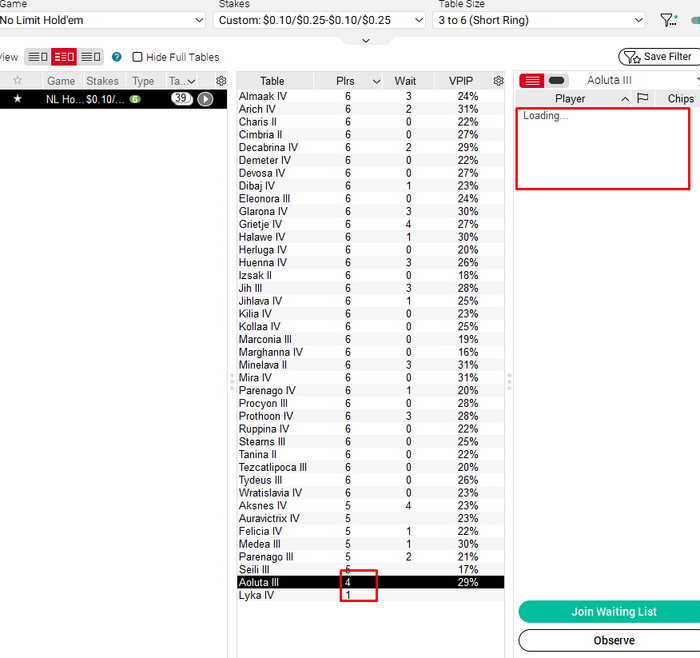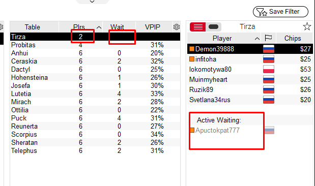 2. Зависит ли она от того, много столов отфильтровано в лобби или мало?