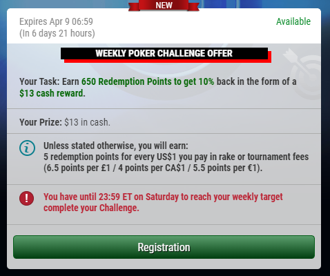 И вот дали недельное 1250 пойнтсов 100 долларов
