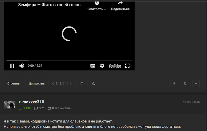 Напрягает, что ютуб я смотрю без проблем, а клипы в блоге нет, заебался уже туда сюда дергаться.