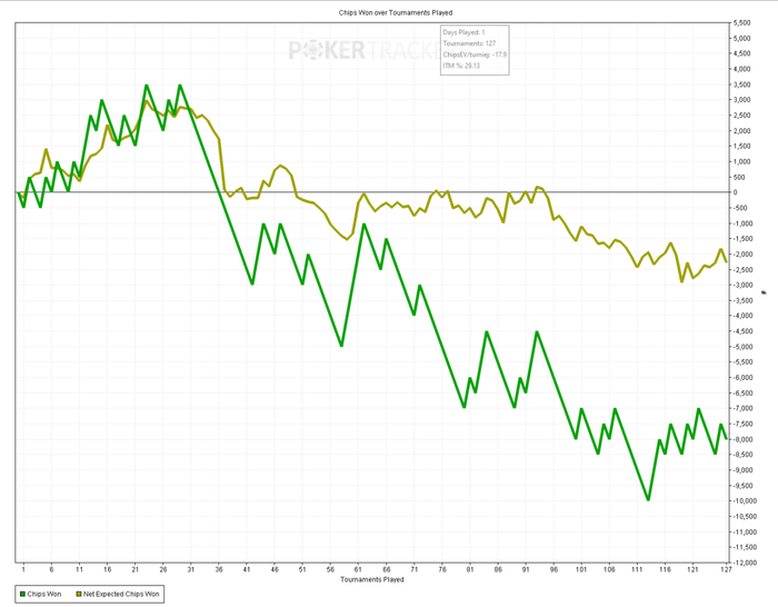 Получается 35% против слабых регов или сильных фишей у него было по меркам дайчесс. Довольно интересно сравнить этот формат с ХА СНГ турбо или гипертурбо. Кажется, что цифры будут очень похожие.