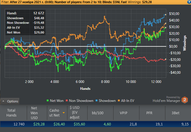 И кстати думаю буду учитывать рейкбек в профит т.к. я уже намесил 115$ рейка, а это лишние 17$ к бр-у. К тому же на нл5 с учетом высокого рейка (пока что получается около 8бб) рейкбек 15% это +1бб к винрейту, что пока очень существенно для меня учитывая что я долблю в микроплюс.