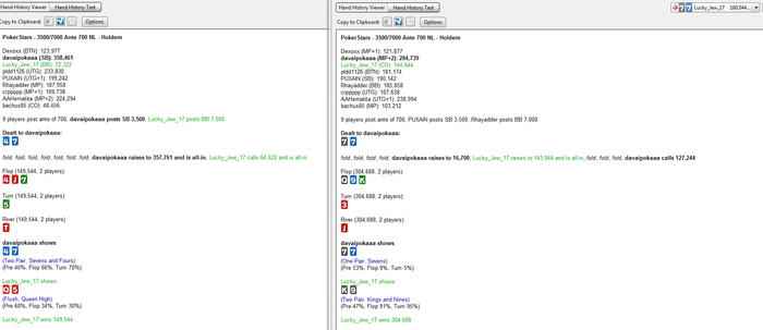 3) Там играет много слабых ХС лайв регов, которые прилично уступают топам онлайна, поэтому эта выборка не показательна. А вообще там зарегано до 20 ХС фишей, которые могут обьявиться по 5-6 человек в один день и сделать 50% входов в 5к турик.