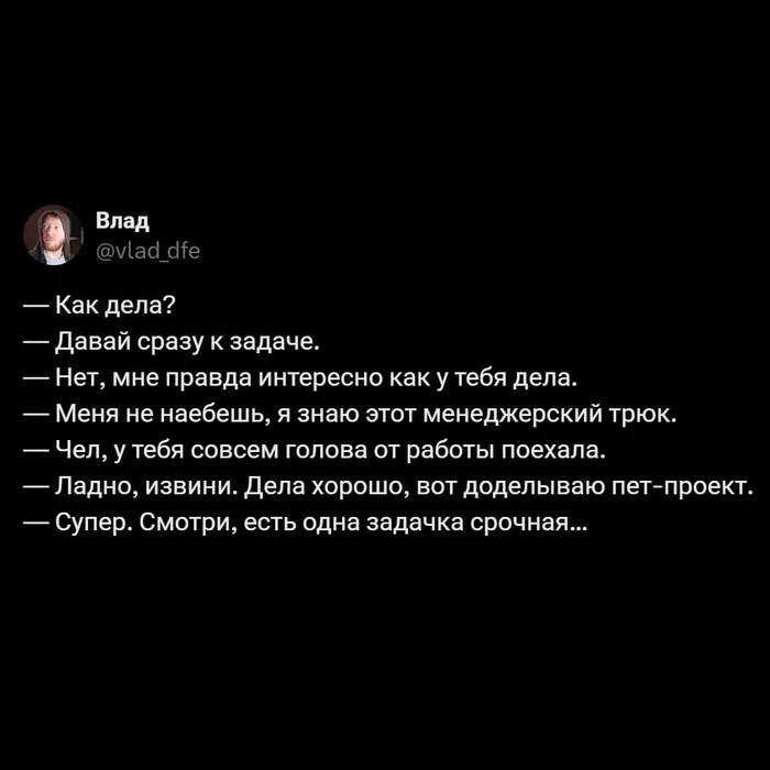 также, завершились спустя несколько дней, как только я понял, что ребята даже сцут написать в тг, вместо этого ожидая взаимного лайка, а потом еще и ведя какие-то робкие танцы в диалоге.