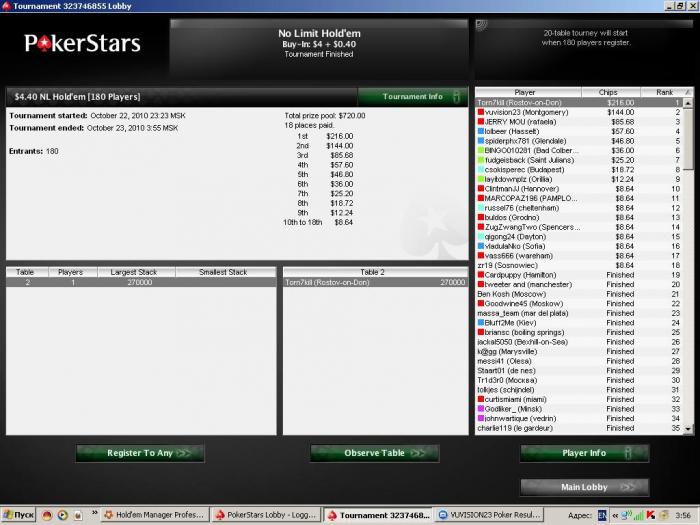 Full Tilt Poker $10,000 Guarantee No Limit Hold'em Tournament - t40/t80 Blinds - 9 players -
