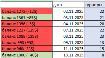 Начало было хорошее, я катал по 10-12 столов, люди пихали в меня стеки, я откалывал их, на ШД фишечки ехали ко мне и я был счастлив и уверен в себе. Потом подул ветер перемен, фишечки все реже и реже стали ехать ко мне на ШД, но в меня все так же пихали овербет алыны