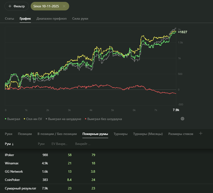 Дальше, пообщавшись с вами, за что вам всем спасибо, я понял что это особенность поля и нужно просто подстроиться под это все. Я начал катать 4 стола и просто писать на всех нотсы. И полезность была не в самих нотсах, а то что я смотрел ШД бесплатно (а люди же не только против меня, как оказалось, играют пушами на ривере)