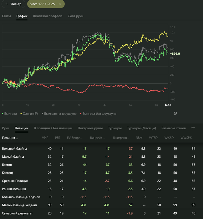 5) Из-за мысли что тут все телефоны, я снизил 3беты, стал больше Колдколить, сужать ренджи, и самое глупое - чекать с велью в надежде что в меня засунут. Ведь я думал, что суют они в меня, когда я чекаю, потому что у меня слабая (оказывается они суют когда у них сильная а не когда у меня слабая)