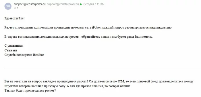 Я спросил как будет производится расчет (будет ли расчитан по ICM), если был на предфиналке + в призах + просто в турнире. Ответы как-то не очень обнадеживают