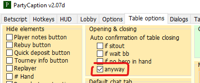 При этом при блокировании хоткеев это не совсем так, и First button блокирует не только фолд, а весь хоткей Check/Fold вообще. При этом в зуме также может блокироваться и фастфолд - вероятно я как-то изменю или добавлю новую опцию для этого в будущем.