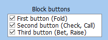 Теперь в настройке Action blocking можно настроить блокировку отдельных кнопок, или, при желании, настроить разное время блокировки для разных кнопок в одной и той же ситуации (например, чтобы фолд блокировался на 1 секунду, колл на 3, а рейз на 10).