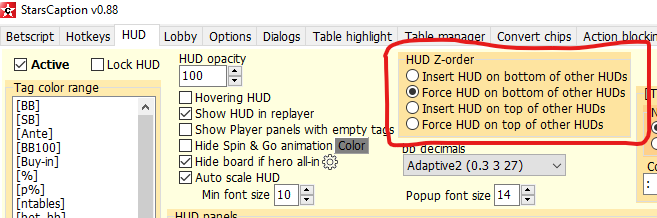 1. При помощи Layout editor / Folded/Sitting out players можно настроить степень затемнения сфолдивших оппонентов (при желании - вплоть до их полного исчезновения).