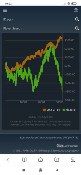 Я особо не спец в покере , в графиках но если я правильно понимаю теоретически зелёная линия должна быть на равные с оранжевой , на практике может быть ниже или выше в определенных промежутках ! Если это так то почему она ни когда не пересекает в верхнюю сторону?