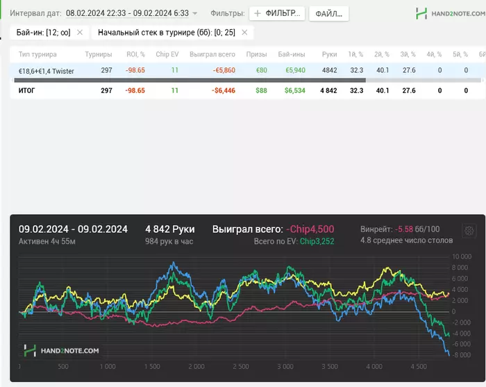На протяжении всей ночи невыносимо было играть, первые пару часов я вообще не успевал нажимать кнопки. Потом вошёл в кураж, кстати с помощью медитации и общения с высшей силой, плюс просил сил и помощи преодолеть своё состояние УБИЙЦЫ. Вошёл в зону и доиграл в лучший покер, но результаты постоянно смотрел и конечно сам себе выносил мозг этим. Как следствие последние турниры всё-таки оттелефонил консервативных любителей.