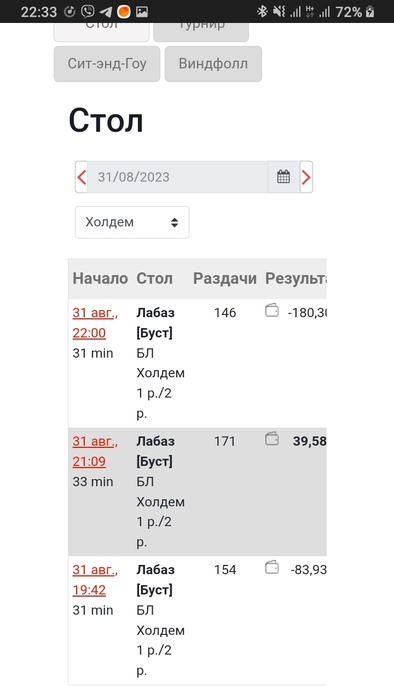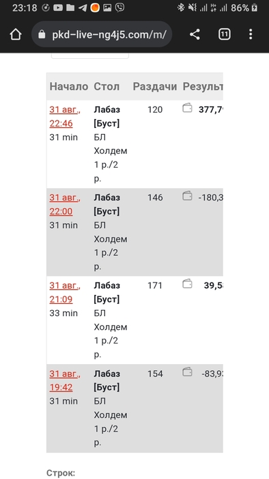 А я никогда так в замазке не играла. А вдруг я бы еще в больший минус ушла... Реально было жутковато) Но я подумала пох, не затайтилась и дальше продолжила агрессивно играть. Тридцатимунтку закончила со стеком в 185бб Подумала что плюсанула даж чутка. Конечно надеялась что это будет не 13 копеек🙈😄