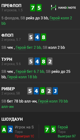 Сегодня сделаю выходной. Просто как будто в сказке где рум каждую руку подкручивает, уже в конце начал скринить последние 10 мин, еще до этого 2 стека недобора и любой ривер доезд и когда такой старт, лучше закончить сразу.