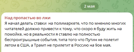 Пожалуй, я бы не рискнул повторять ставки на "беспроигрышные события" за человеком, который в "реальности" живет в иллюзорном страхе перед ИИ.