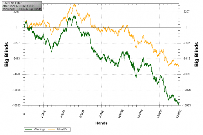 Но важно понять, в чем урок, где причина дискомфорта. В любой ситуации урок у каждого свой, но покер, с большой вероятностью - это далеко не тренировка упорства, таким способом его не пройти )
