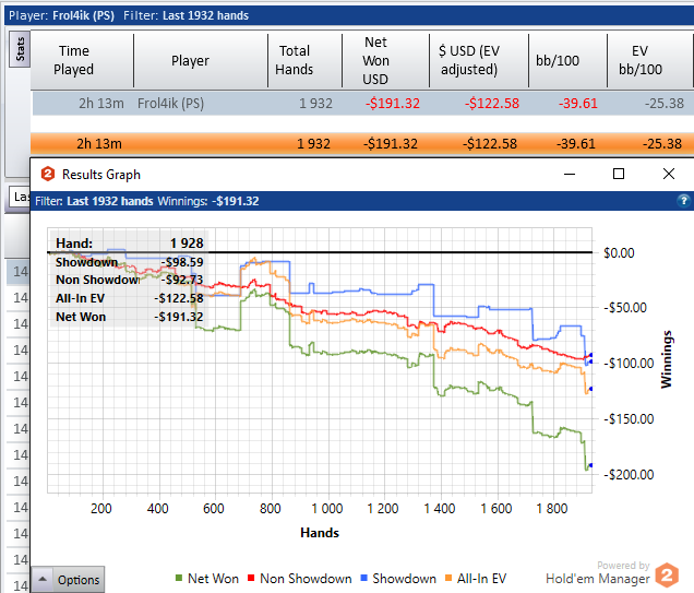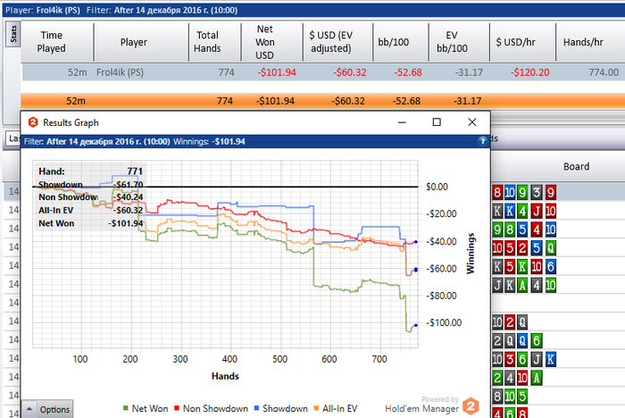 Периодически, у меня появляется интерес к теории покера. Но чтобы гриндить, такого нет почти никогда. Ну что я за 5 лет катки не видел? Мне уже не комфортно на нл2-50. На нл100 меня не приняли, было несколько попыток. Ладно бы я еще бабки печатал...