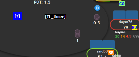 1) На ПокерСтарз есть кнопки ухода в ситаут (некст хенд и некст бб). Играю с мелким размером столов, кнопочки эти слишком мелкие, попадать по ним трудно. Поэтому создал 2 кнопки хада замещающие их (при нажатии на хад уводит в ситаут). Хад работает хорошо, но может есть способ увеличить в размере сами старзовские кнопки ухода в ситаут Layout editorом? Хотелось-бы такую функцию. Или может если найти графический файлик и в пэинте увеличить его, то может увеличатся и сами кнопки? Я не смог найти нужный файлик, а то попробовал-бы. Может знаете название?