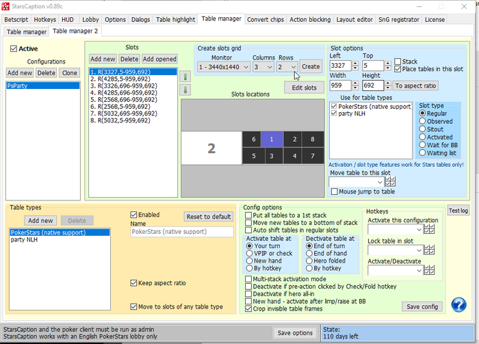 Имя класса и заголовок окна у реплеера Пати не отличается от заголовка и имени класса у столов, поэтому, к сожалению, Table manager 2 никак различить их не может.
