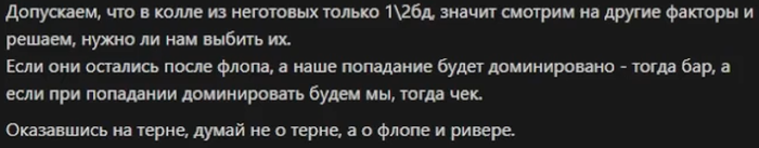 Тоже не понятно, что это значит. Или здесь ошибка. Если люди перекалывают флопы, значит нам выгоднее ставить на флопе свое вэлью. С началом эвристики совпадает, но тогда зачем миксовать свое вэлью по позже?