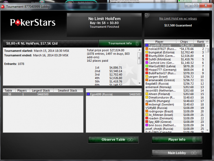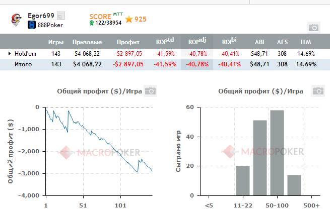 Ну АБИ 15 я могу себе позволить, но хз, мне хочется подороже играть. Лудик я, но БРМ какой-то соблюдаю Но если бы не было бекеров, спокойно гриндил бы АБИ 15, пытаясь по-тихоньку раскрутиться. В общем, я просто очень люблю Игру, но чем дороже, тем любимей Мне победы в турнирах нужны-то не ради самих денег(ну кроме жизненно необходимых), а для того, чтобы играть подороже Вообще мне кажется, я один из немногих романтиков в покере, которые не стремятся открыть бизнес там, еще куда-то вкладывать деньги. И меня тошнит от разговоров на форуме, куда вложить заработанные деньги. Понятно, очень желательна своя квартира, но не как средство вложения, а просто чтобы жить. Ну, пожалуй, и все Из людей, любящих так игру, только Джипси могу вспомнить, хотя может и еще кто-то есть)