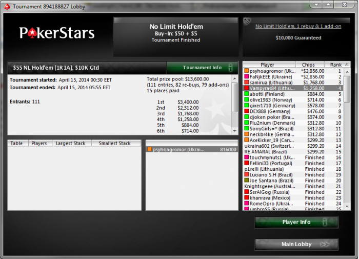 Final Pot: $329.56 psyhoagromor shows a straight, Ten to Ace