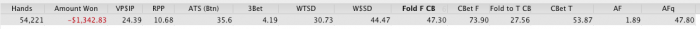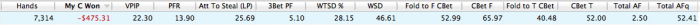 UTG: 27.48 BB (VPIP: 48.39, PFR: 14.52, 3Bet Preflop: 11.54, Hands: 62)