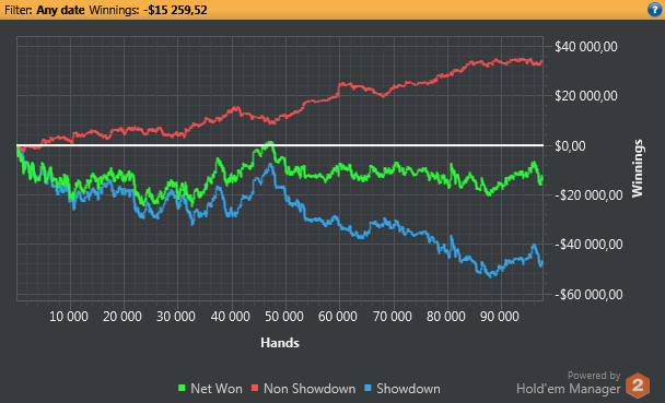 не выйдет, не дадут столько рук - если только не перейти на фр - где больше фолдов и то сомнительно, я хочу отыграть на сх. + с таким же успехом можно фолдить на нл2 каждую руку и выиграть один банк на нл10к, и марафон закончен в плюс. или в обратную ситуацию, если ровнять на винрейт - весь марафон проигрывать на своих лимитах, лететь 10 стеков и полностью переключиться на нл2, там вывести винрейт в бб/100.