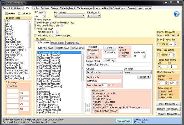 Опцию Show panel / on MTT Knockout table в HUD / Table panels и Player panels разбил на две - on MTT KO table и on MTT PSKO table.