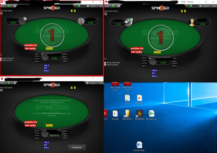 Опция Register if already enrolled from X to Y работает тем же образом, как и для не начавшихся турниров - вы можете задать для турнира диапазон количества игроков, при котором вы хотите регистрироваться в турнир, и программа будет регистрировать вас только внутри этого диапазона. Если задать диапазон в пределах количества игроков до начала турнира, то после начала регистрации делаться не будут. Нет простого способа добавить фильтры по уровню блайндов или времени от начала турнира, поэтому это единственная опция, которой вы можете отделять давно начавшиеся турниры от недавно начавшихся (если турнир начинается после набора 45 игроков, то вы можете ограничить регистрацию, если в нём менее 50 или 55 игроков, например, если не хотите регистрироваться в слишком поздних стадиях).