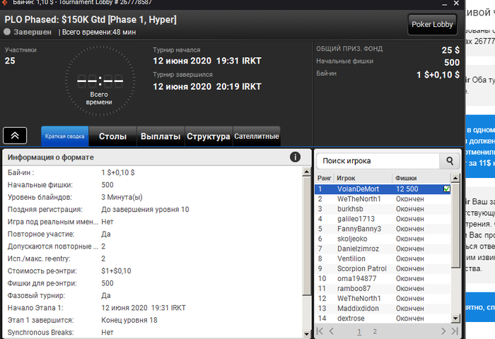nemmezida, я согласен, что лучше бы они не ставили турнир в расписание, чем удалять уже после того как поставили. Этим они вынудили испытать негативные эмоции тем кто был зарегистрирован. Причем это даже были эмоциональные качели - от радости, что у тебя в числе немногих оказался билет до негатива от отмены турнира. Но объективно обвинять их в мошенничестве по данному эпизоду не правильно. Условия акции они не нарушили. Были объявлены сроки проведения. Под каждый выигранный тобой билет был проведен турнир. Какой-то турнир ты пропустил по каким-то причинам и у тебя сохранился билет. Вот я, например, в последнюю акцию специально пропускал турнир, как писал выше, памятуя пост хьюстона. Срок действия билета выигранного в последний день акции 4-го июня - был до 6-го. Последний турнир был 5-го. В этот турнир игроков было вдвое меньше чем в предыдущие дни. Если бы турнир был еще и шестого, то игроков совсем было бы крохи. Но если турнир 5-го был логичен, т. к. после турнира 4-го, было еще несколько часов в которые можно было выиграть билет, под который напрашивался турнир, то ставить ли турниры дальше для тех у кого завалялись билеты - исключительно на их усмотрение и пожелание. На восьмерках у меня, к примеру, к концу последней галактической акции было около сотни билетов на фрироллы 2к, которые я не играл ввиду слабого матожидания, которые после окончания акции просто резко пропали, как уже не раз было в подобных случаях. И срок действия билета здесь не ключевой параметр. Приоритетным является все-таки срок акции. Да и билет у тебя, я думаю все же не удаляли. Просто все билеты на которые нет целевого турнира переходят в неактивные и перестают отображаться. Чтобы их увидеть нужно в фильтре выбирать раздел "неактивные".