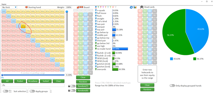 Я бы не стал тратить свое время еще раз, и обсчитывать это, если бы не итоговые результаты. Я поставил на контроль проверку частоты совпадения моих непарных рук при сносе на префлопе игрокам, которые вошли на флоп.