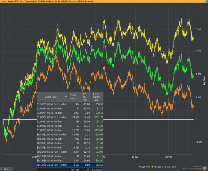 Тащить я не начал, но за месяц все равно отчитаюсь для истории. Играл мало и очень плохо. Так что в целом картина довольно печальная. Причем я спокойно мог бы сделать еще плюс 2-3 тысячи по ев за те же часы, если бы просто изменил подход к игре.