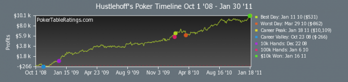 Что-то я посмотрел последние страницы, наверное, у кого-то может сложиться ощущение, что у меня все плохо... но это не так :) Я понимаю, что играю на интерес. И хотя мне нравится выигрывать, но дисперсия и ошибки при моем выборе игры (только те, кто сидит и не отсаживается) уводят в минус, точнее - в ноль (БР $2,450, то есть за 2 месяца я выиграл 9БИ на данный момент, хотя завтра могу проиграть 20, конечно же)), но никто, во-первых, не отменял апстрик на следующей неделе, а во-вторых, я вижу, что мой винрейт растет.