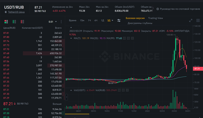 Вы думайте хотя бы немного, перед написанием постов. Чего нельзя обналичить? Большие гэпы наблюдаете? Что там сейчас, в районе 86 (поди пробило уже) торгуется пара? Смотрим бинанс: